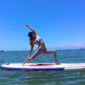 スタンドアップパドルボードの略で、サーフィンに似ていますが大きめのボードに立ちパドルで漕いで進みます。