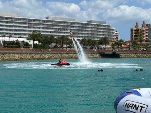 水上バイクの噴射装置を足に装着し、そこからの水流の力で空を飛ぶという、こちらも人気のアクティビティです。