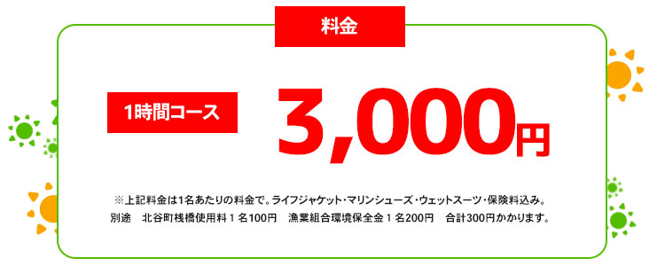 (船の出航は受付→着替え後準備が出来次第毎時30分に出航となります。)